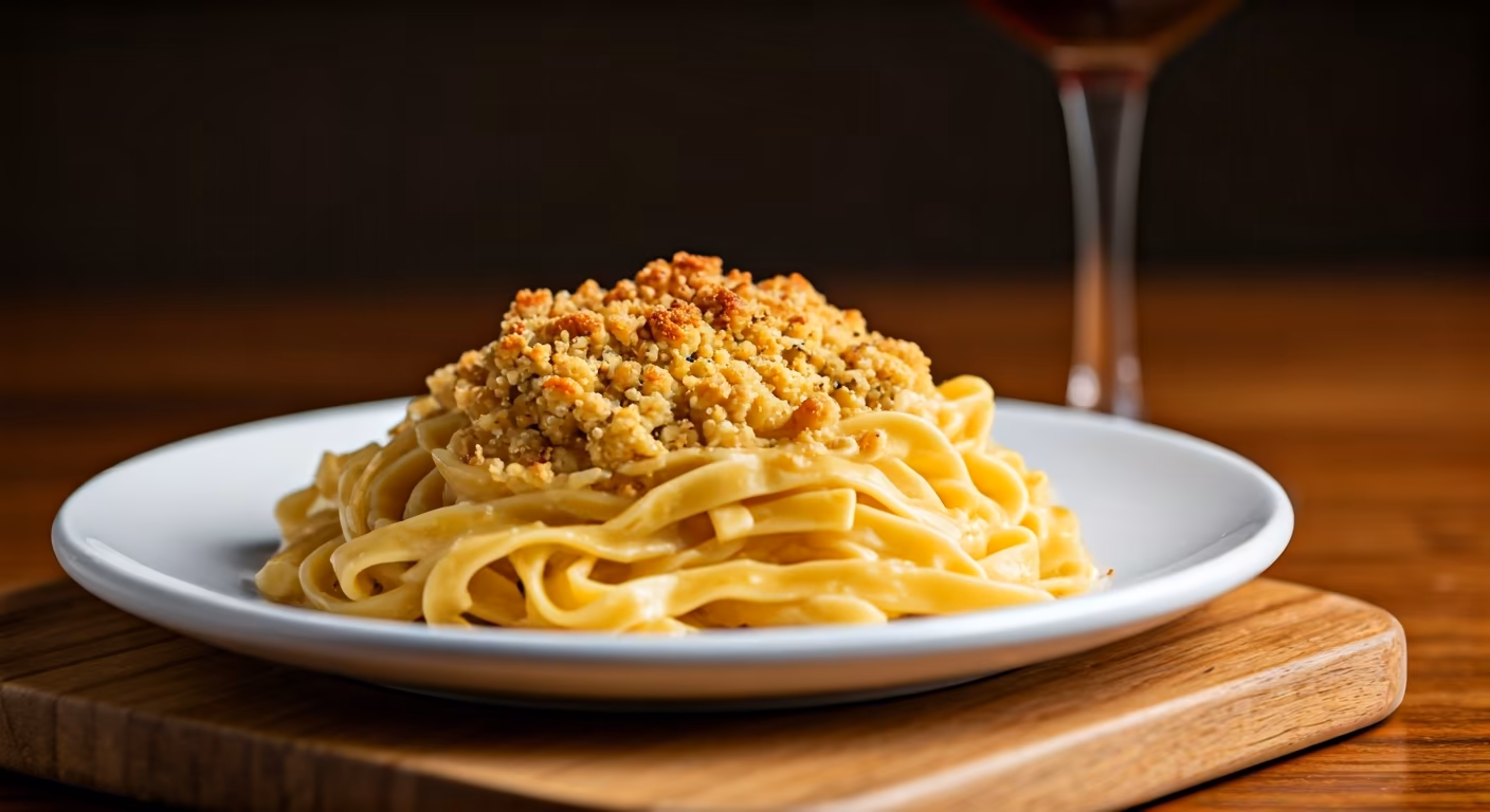 This Cheesy Amish Pasta Crab Bake with Citrus Orange Focaccia Crumble is a truly decadent and flavorful dish that combines the richness of Amish pasta with the delicate sweetness of crab meat. The creamy cheese sauce envelops the pasta and crab, creating a comforting and satisfying base. The addition of a citrus orange focaccia crumble adds a bright and zesty contrast to the richness of the dish, while also providing a delightful crunch. This bake is perfect for a special occasion or a cozy night in, and it's sure to impress your guests with its unique flavors and textures.