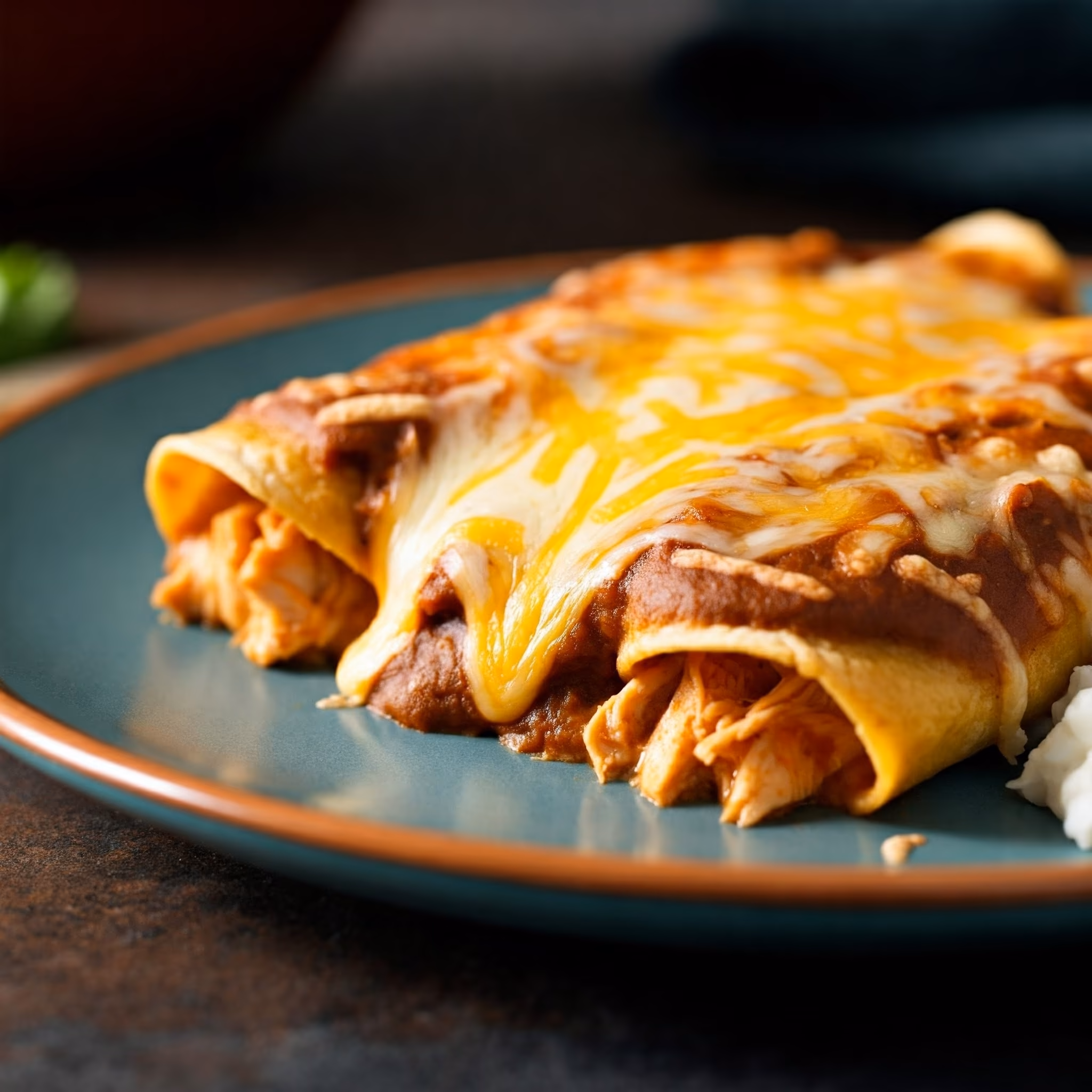 Cheesy Chicken Enchiladas are a comforting and flavorful Mexican-inspired dish that combines tender, seasoned chicken with gooey melted cheese and a rich, savory enchilada sauce. The chicken is shredded and seasoned with a blend of spices, then rolled up in soft tortillas and smothered in a tangy red or green enchilada sauce. Topped with a generous amount of cheese, the enchiladas are baked until golden and bubbly, creating a deliciously cheesy, satisfying meal. Perfect for family dinners or gatherings, these enchiladas offer a perfect balance of flavors with just the right amount of spice and creaminess, making them a crowd-pleasing favorite.