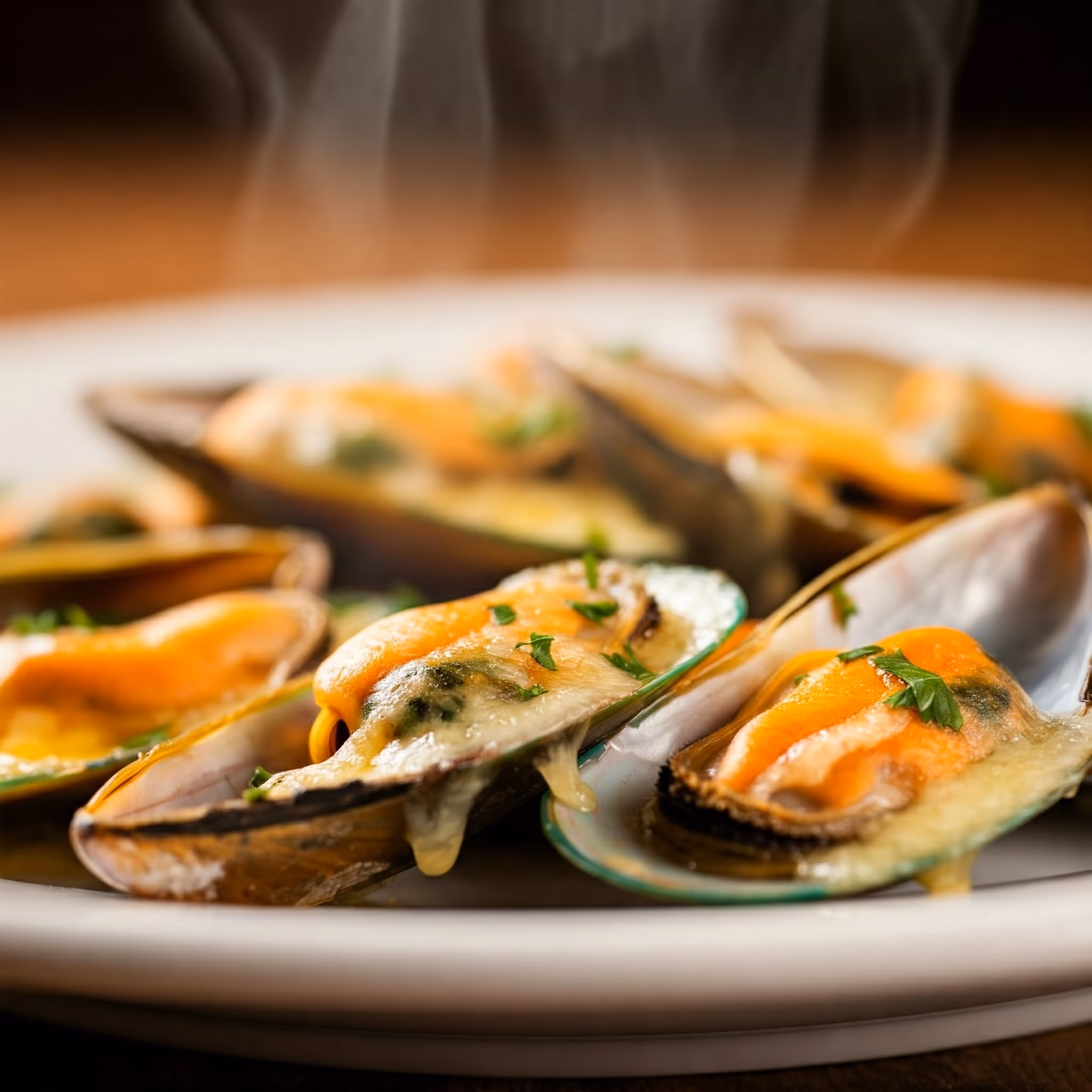 Cheesy Garlic Mussels is a decadent and flavorful appetizer or main course that will tantalize your taste buds. Imagine plump, juicy mussels steamed in a fragrant broth of white wine, garlic, and butter, then topped with a generous blanket of melted cheese. The combination of briny mussels, aromatic garlic, and rich cheese creates a symphony of flavors that will leave you wanting more. Serve with crusty bread for dipping into the flavorful broth and enjoy this simple yet elegant dish.