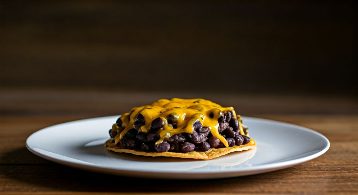 - Spread a layer of the black bean mixture evenly over each tostada shell.