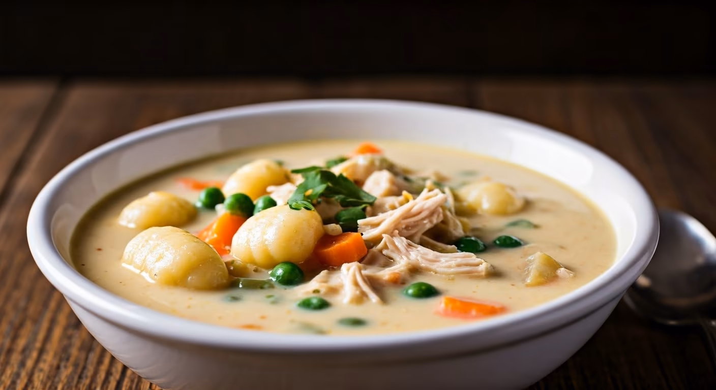 - Add shredded chicken and potato gnocchi, cook until gnocchi floats to the top.