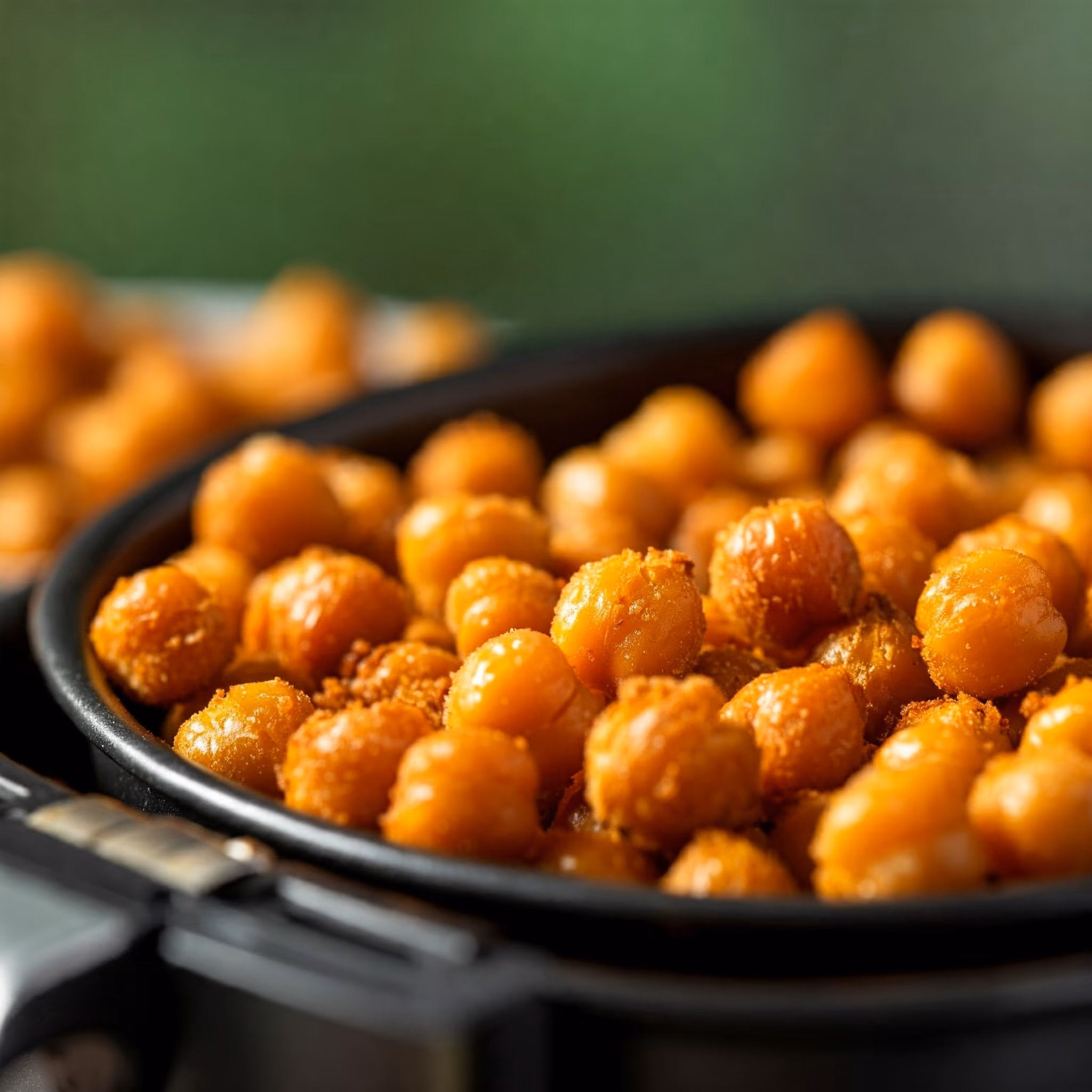 - Air fry at 400°F (200°C) for 15-20 minutes, shaking the basket halfway through, until the chickpeas are crispy and golden brown.