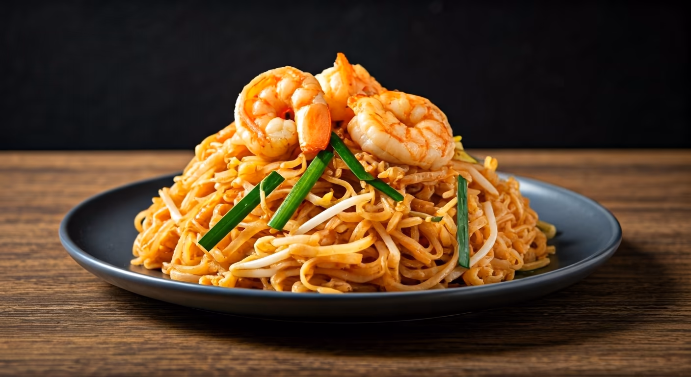 Indulge in the delightful flavors of this Crispy Korat Rice Noodle Pad Thai, where tender shrimp, crunchy peanuts, and zesty lime come together in a harmonious blend of textures and tastes. This dish will transport your taste buds to the bustling streets of Thailand with every bite!