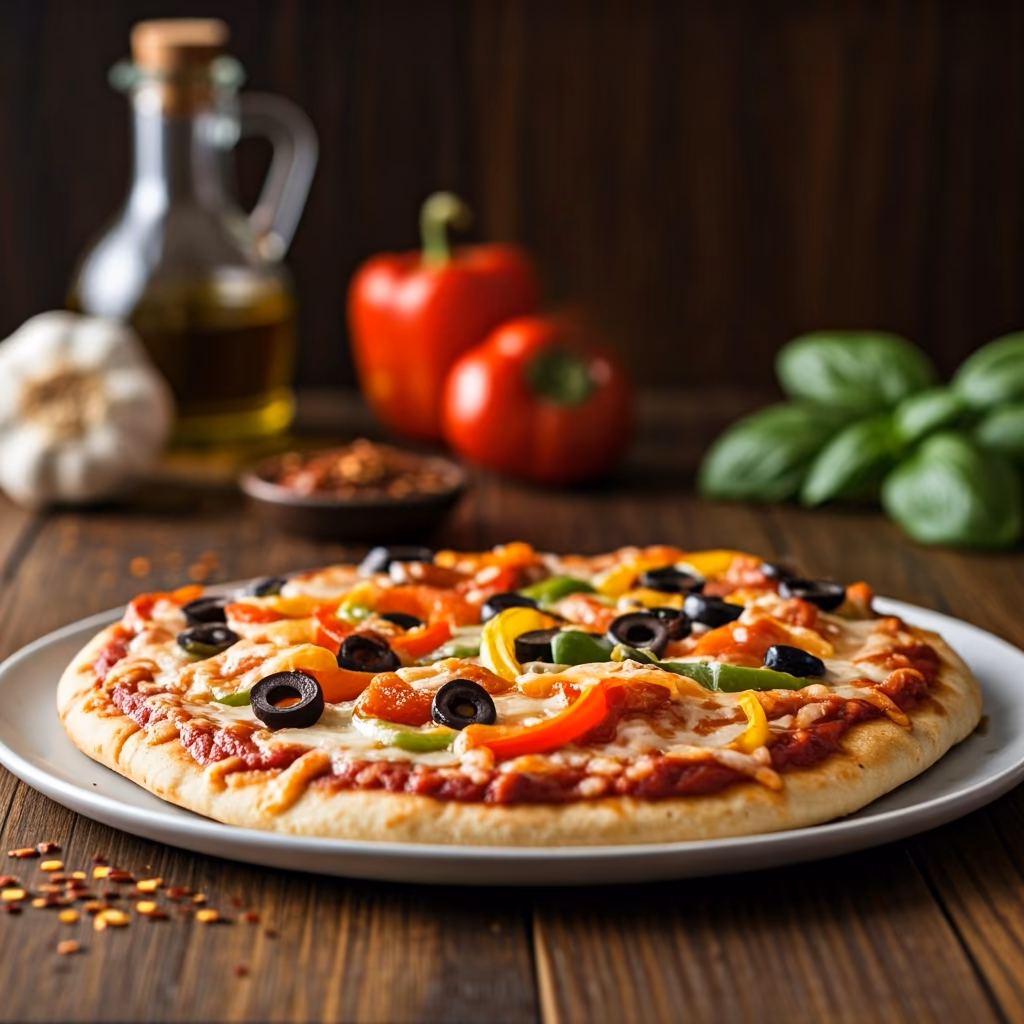 - Flip the dough and spread pizza sauce on top. Add cheese, pepperoni, bell peppers, olives, and oregano.