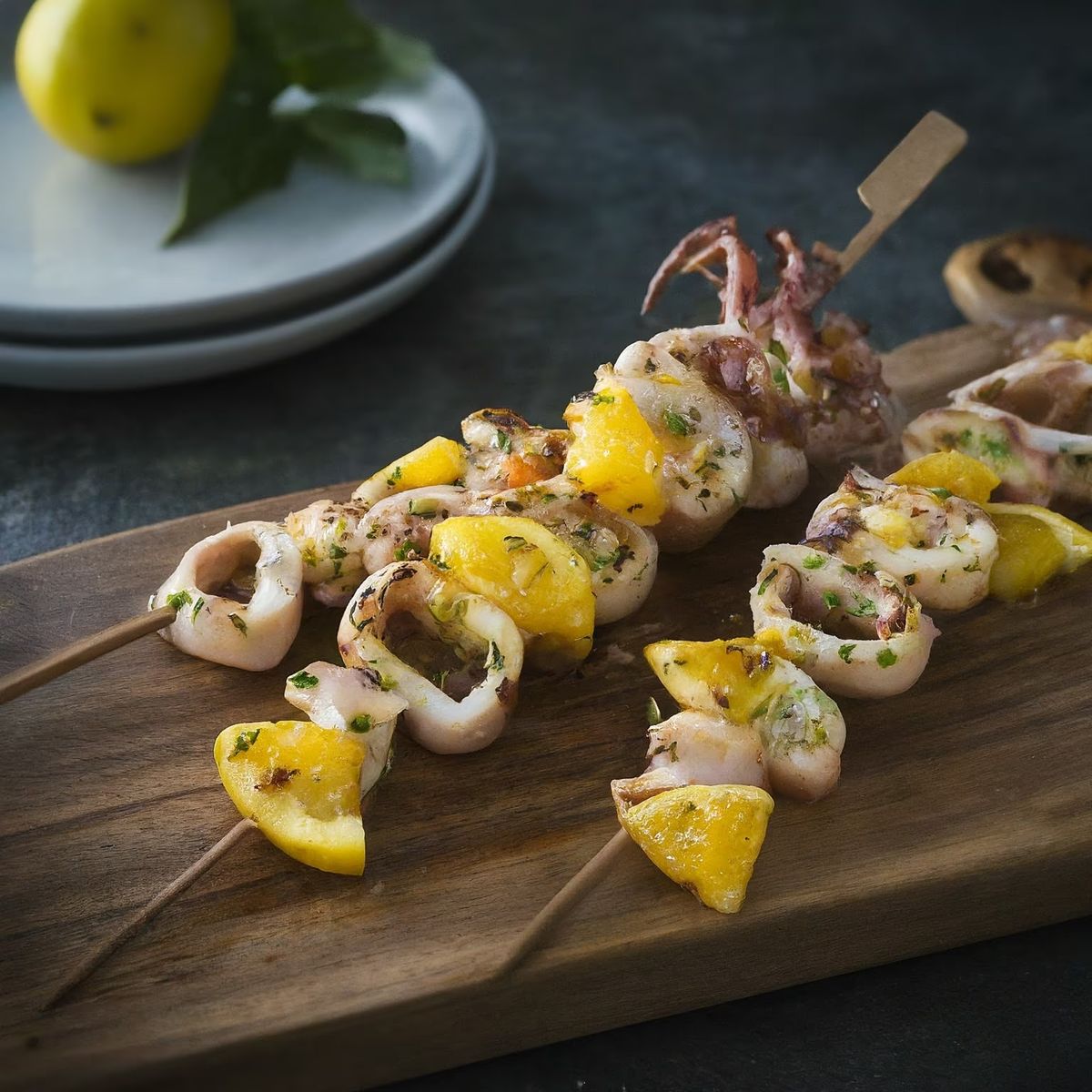 These grilled squid skewers with a zesty citrus marinade are a delicious way to enjoy squid. The marinade infuses the squid with bright flavors, and grilling adds a smoky char that enhances the taste. Perfect for a summer barbecue or a quick weeknight meal.