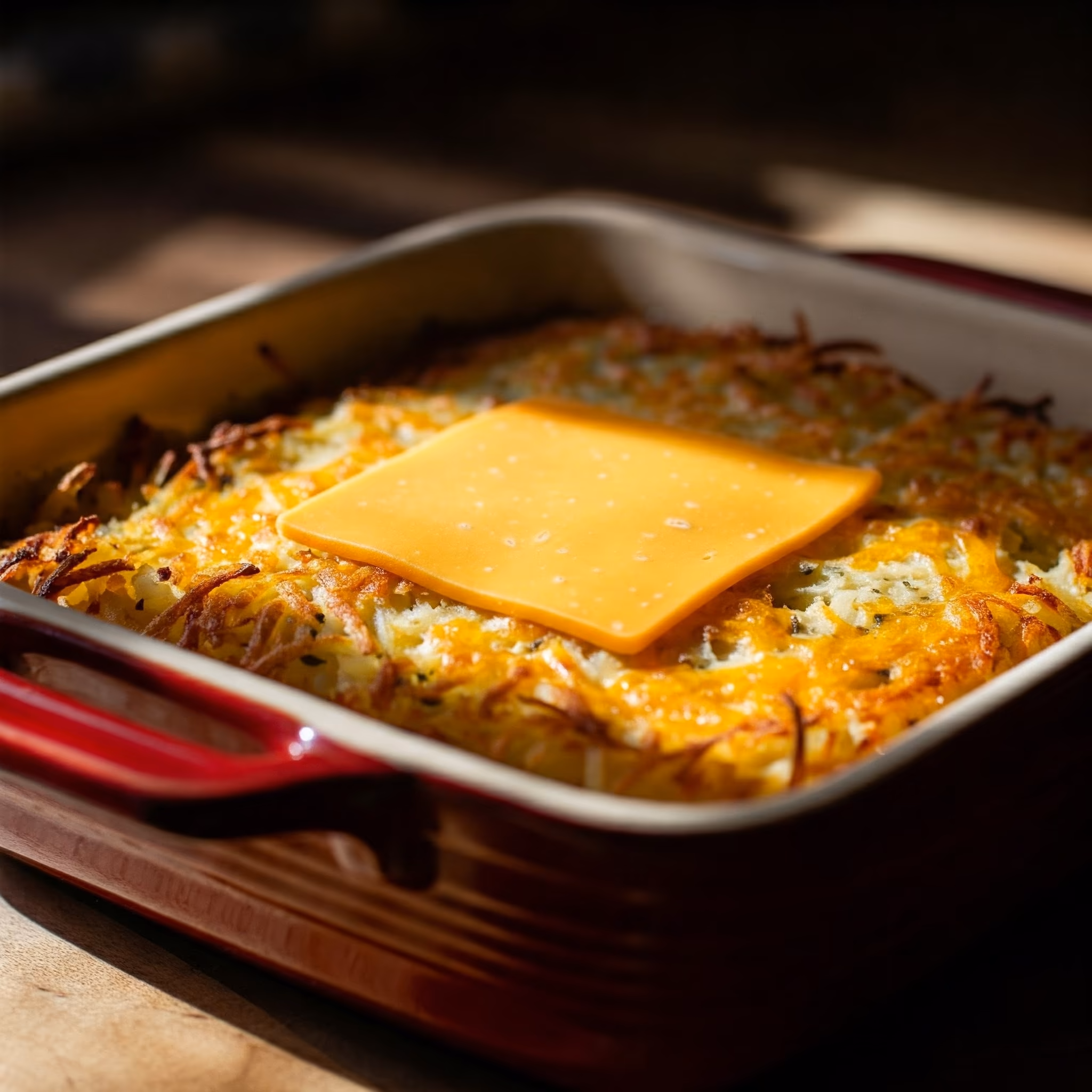 Hash Brown Casserole is a comforting and cheesy dish that's a staple at potlucks and holiday gatherings. This crowd-pleasing casserole features shredded hash browns combined with a creamy sauce made with sour cream, melted cheese, and often condensed soup. The mixture is baked until golden brown and bubbly, creating a symphony of textures with crispy edges and a soft, cheesy interior. Often topped with a crunchy cornflake or breadcrumb topping, Hash Brown Casserole is a versatile side dish that pairs perfectly with everything from roasted meats to holiday ham.