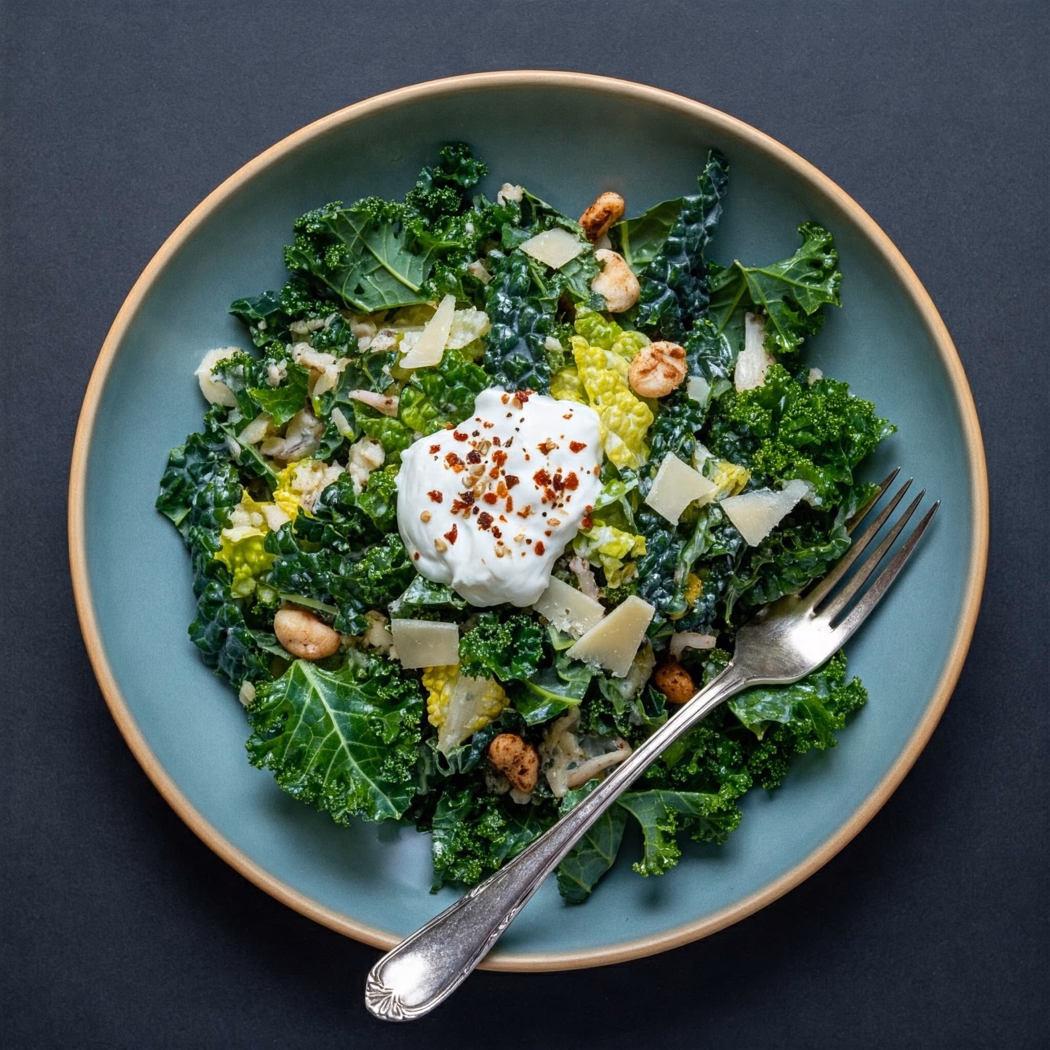 Kale-Romaine Caesar Salad is a fresh and vibrant twist on the classic Caesar salad, combining the crisp, tender leaves of romaine lettuce with the hearty, nutrient-packed texture of kale. Tossed in a rich, creamy Caesar dressing made with anchovies, garlic, lemon, and Parmesan, this salad offers a perfect balance of flavors—creamy, tangy, and savory. The kale adds an earthy depth and a satisfying crunch, while the romaine provides lightness and freshness. Topped with homemade croutons and extra Parmesan, this Kale-Romaine Caesar Salad is a delicious and healthier take on the traditional favorite, making it a perfect side dish or light main course.