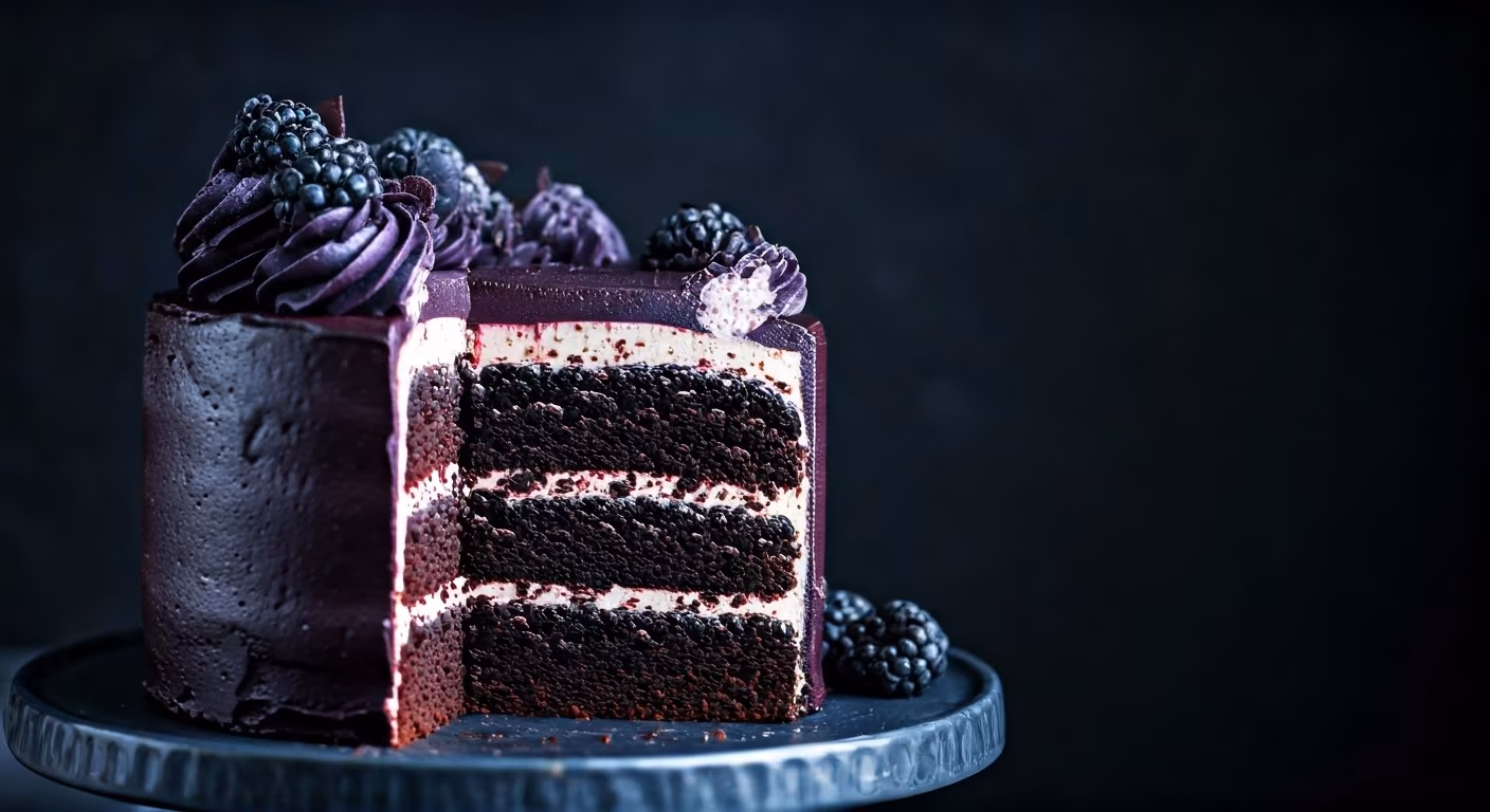 Indulge in the rich and decadent flavors of this Midnight Velvet Cake, a dark and moist dessert that is perfect for any special occasion. The combination of black cocoa, coffee, and rum creates a deep and complex taste that will delight your taste buds.
