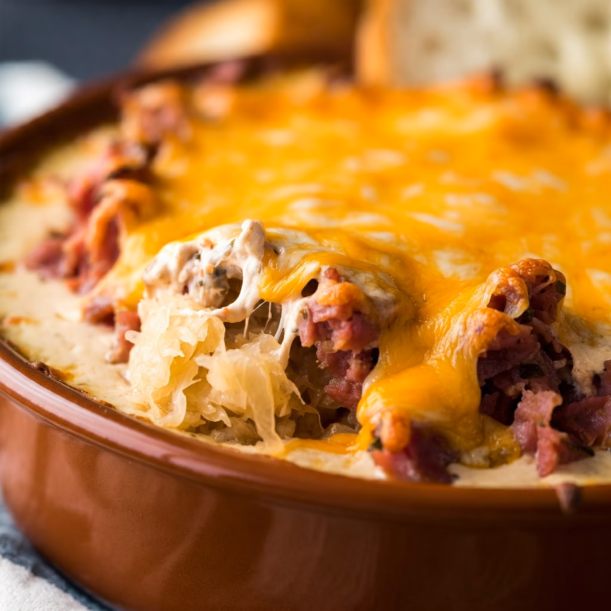 Reuben Dip is a warm, cheesy, and utterly irresistible appetizer that brings all the classic flavors of a Reuben sandwich into a dippable delight. This crowd-pleasing dip features a creamy base of cream cheese and sour cream, loaded with corned beef, tangy sauerkraut, and melty Swiss cheese, all topped with a swirl of Thousand Island dressing. It's the perfect game-day snack, party appetizer, or cozy treat for any occasion.