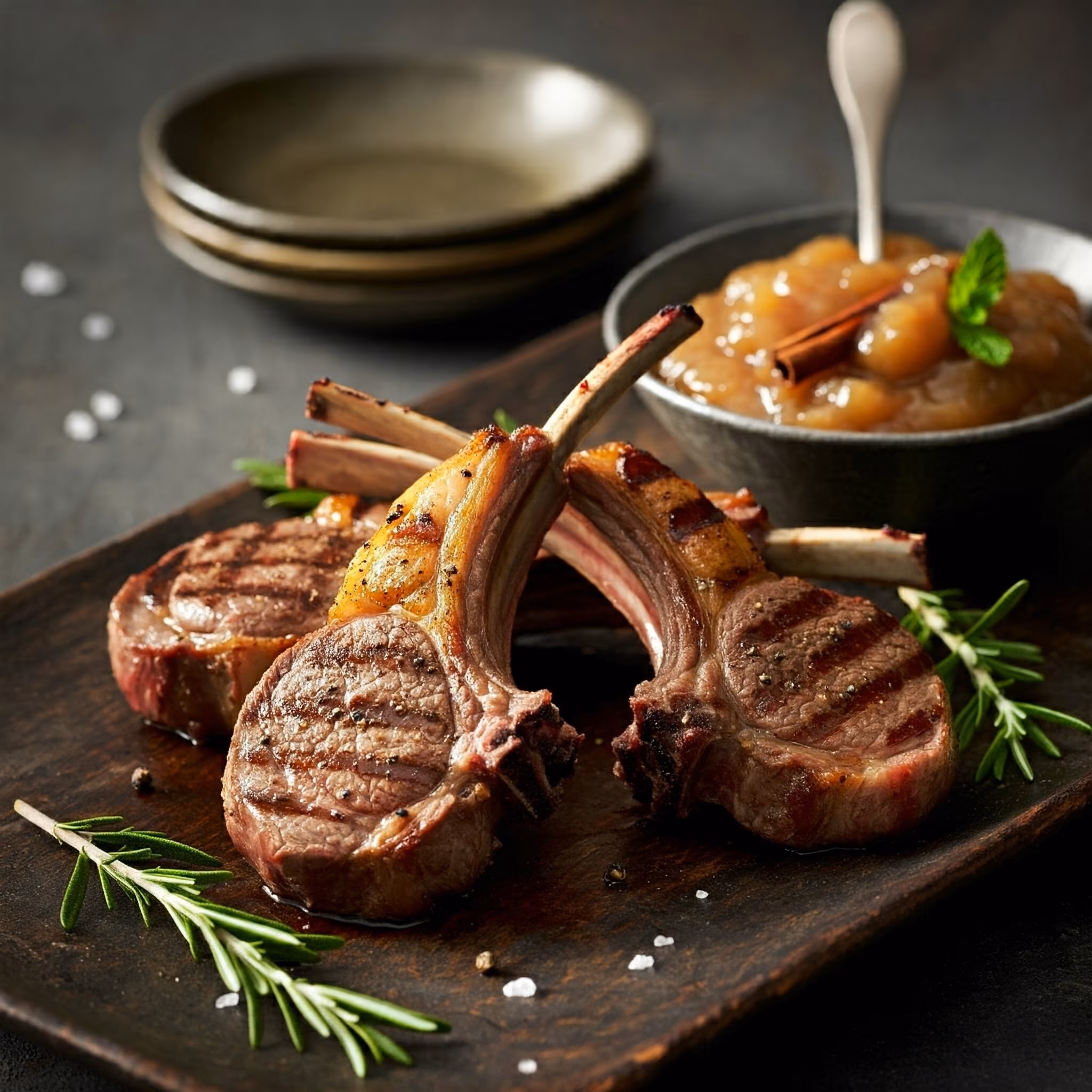 Rosemary Grilled Lamb Chops with Mint Apple Sauce