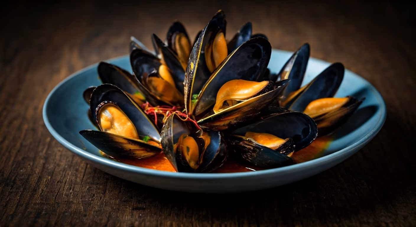 - Pour the creamy sauce over the mussels, garnish with fresh parsley.