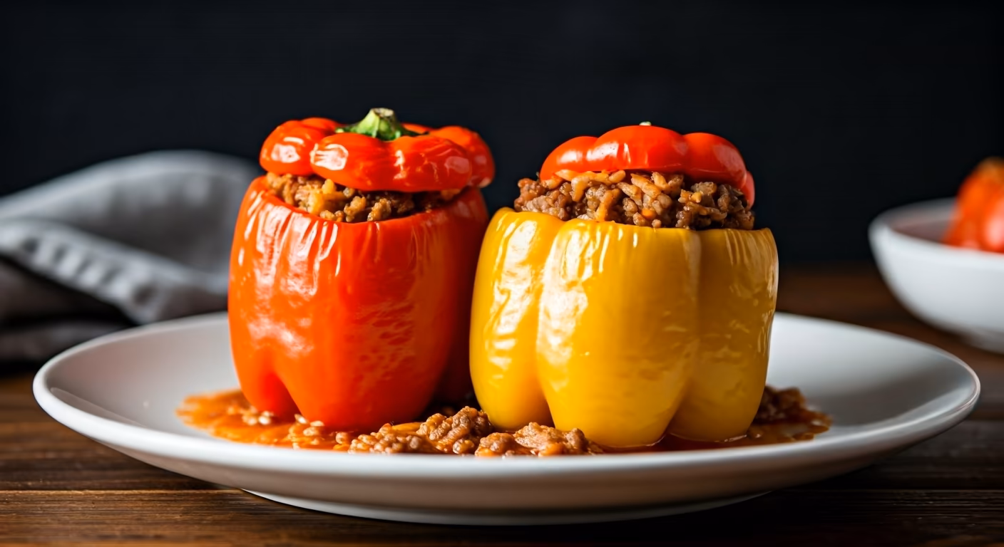 - Stuff the bell peppers with the beef mixture and place them in a baking dish.