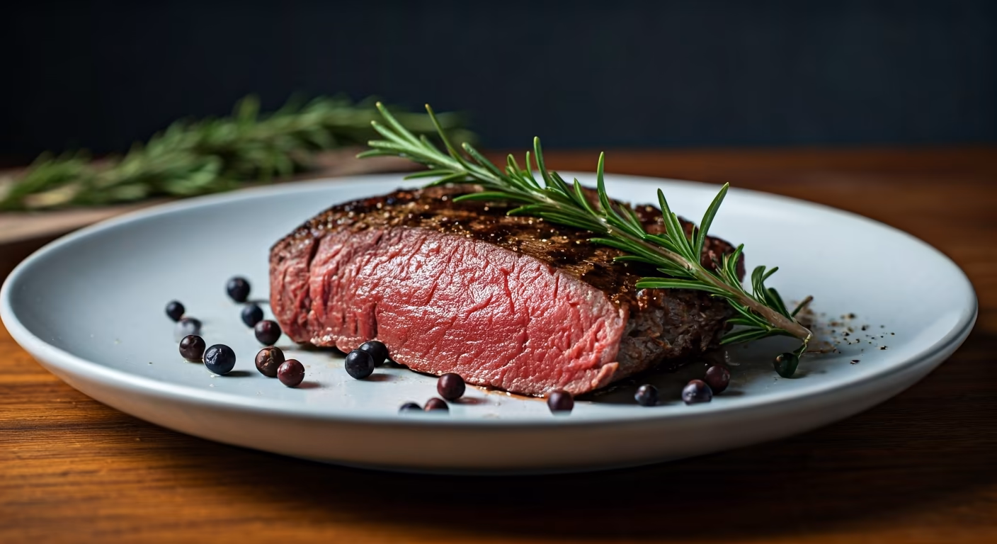- Garnish the venison steaks with fresh rosemary sprigs before serving.