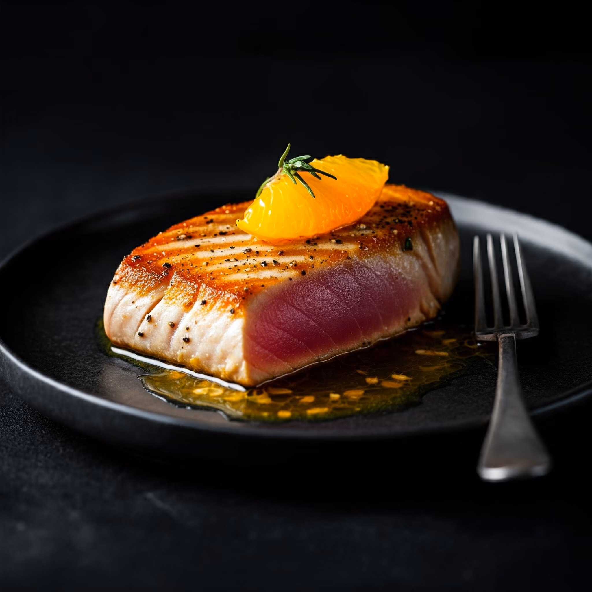 This Seared Bluefin Tuna with Citrus Glaze is a delicious and elegant dish that highlights the rich flavor of bluefin tuna. The combination of soy sauce, honey, and citrus creates a sweet and savory glaze that complements the tender tuna steaks perfectly. Serve this dish with steamed rice and vegetables for a complete meal.