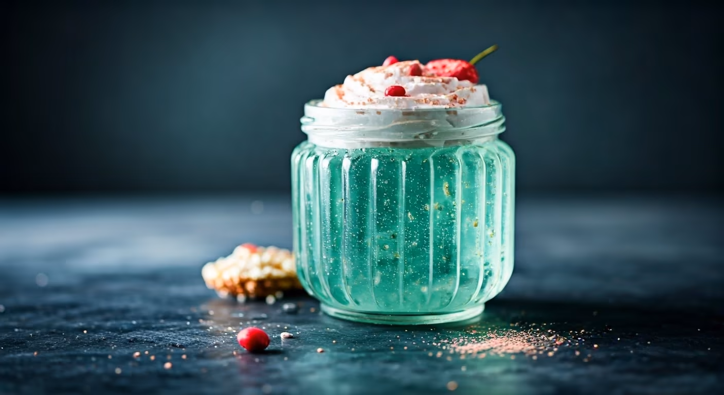 Shimmering Seafoam Jelly is a unique dessert that captures the essence of the ocean with a delicate jelly texture. The fish scales infuse the jelly with a subtle marine flavor, while the lime juice adds a refreshing zing. This jelly is perfect for special occasions or themed parties.