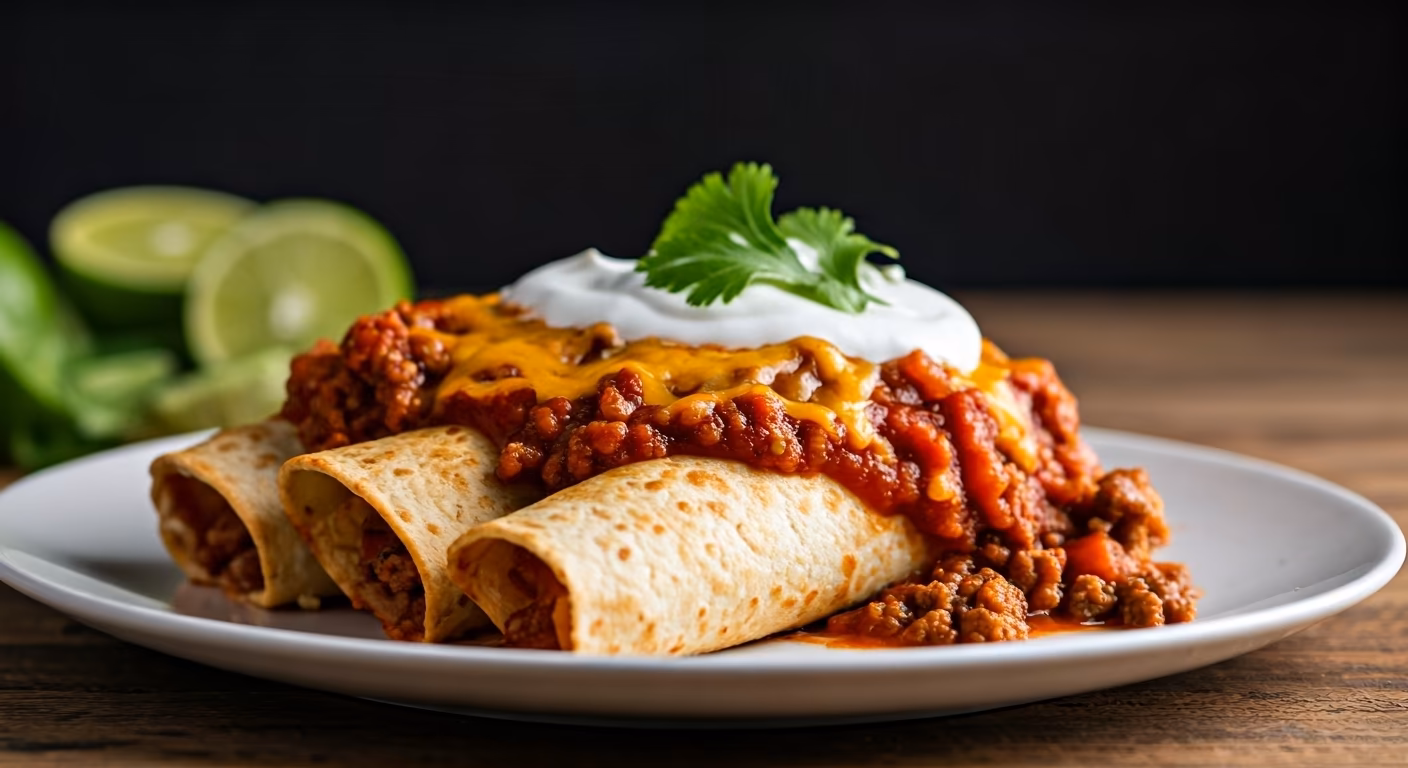 These Spicy Beef Enchiladas with Red Sauce are a flavor explosion in every bite. Savory ground beef seasoned with aromatic spices, enveloped in soft flour tortillas, and smothered in tangy red enchilada sauce. A cheesy, comforting dish that will surely satisfy your Mexican food cravings.