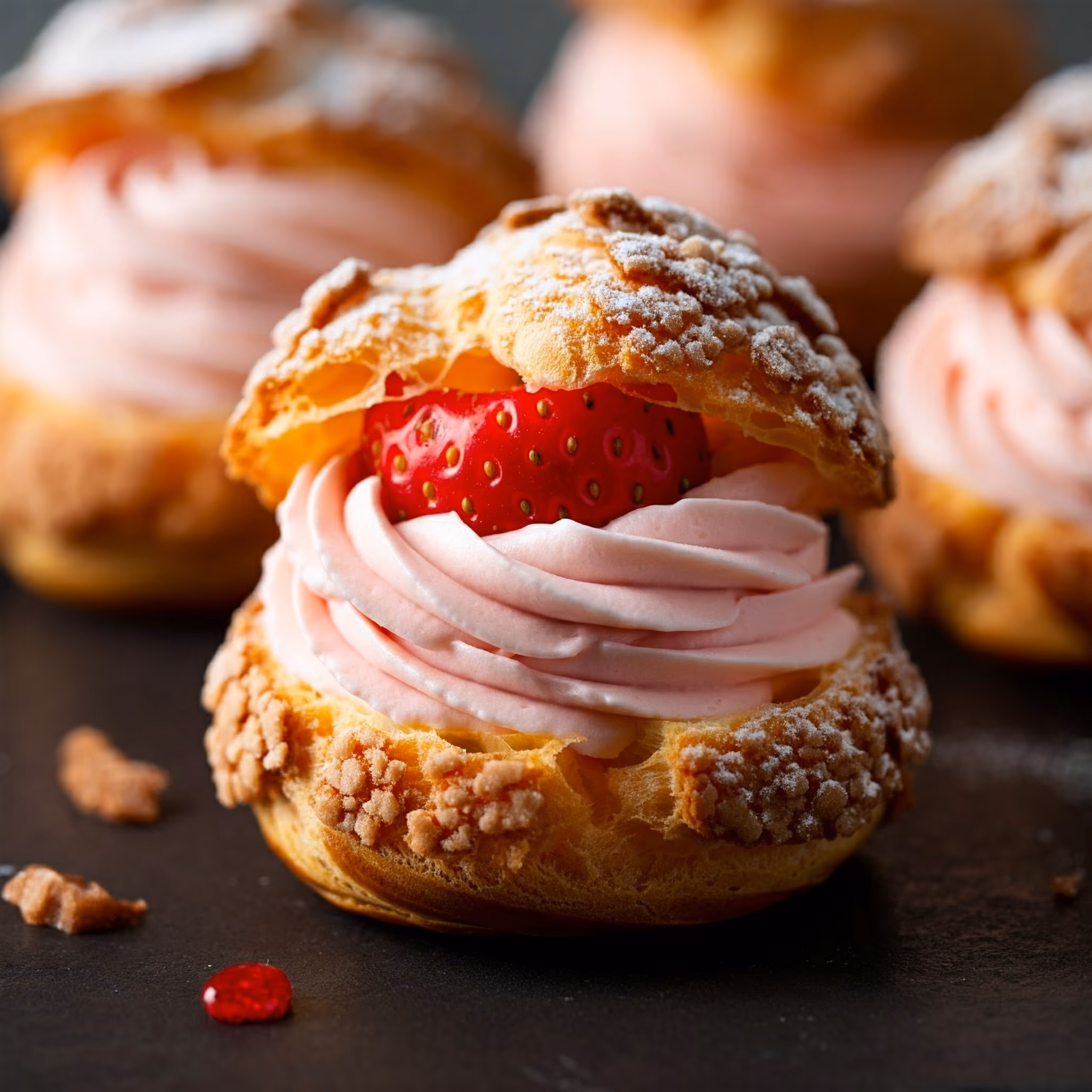 Strawberry Cream Puffs are a delightful treat that combines the airy lightness of choux pastry with the sweet, juicy flavor of fresh strawberries. These delicate pastries are filled with a luscious strawberry-infused cream, offering a delightful burst of summer flavor in every bite. Their elegant appearance and irresistible taste make them perfect for special occasions, afternoon tea, or any time you crave a touch of sweetness.