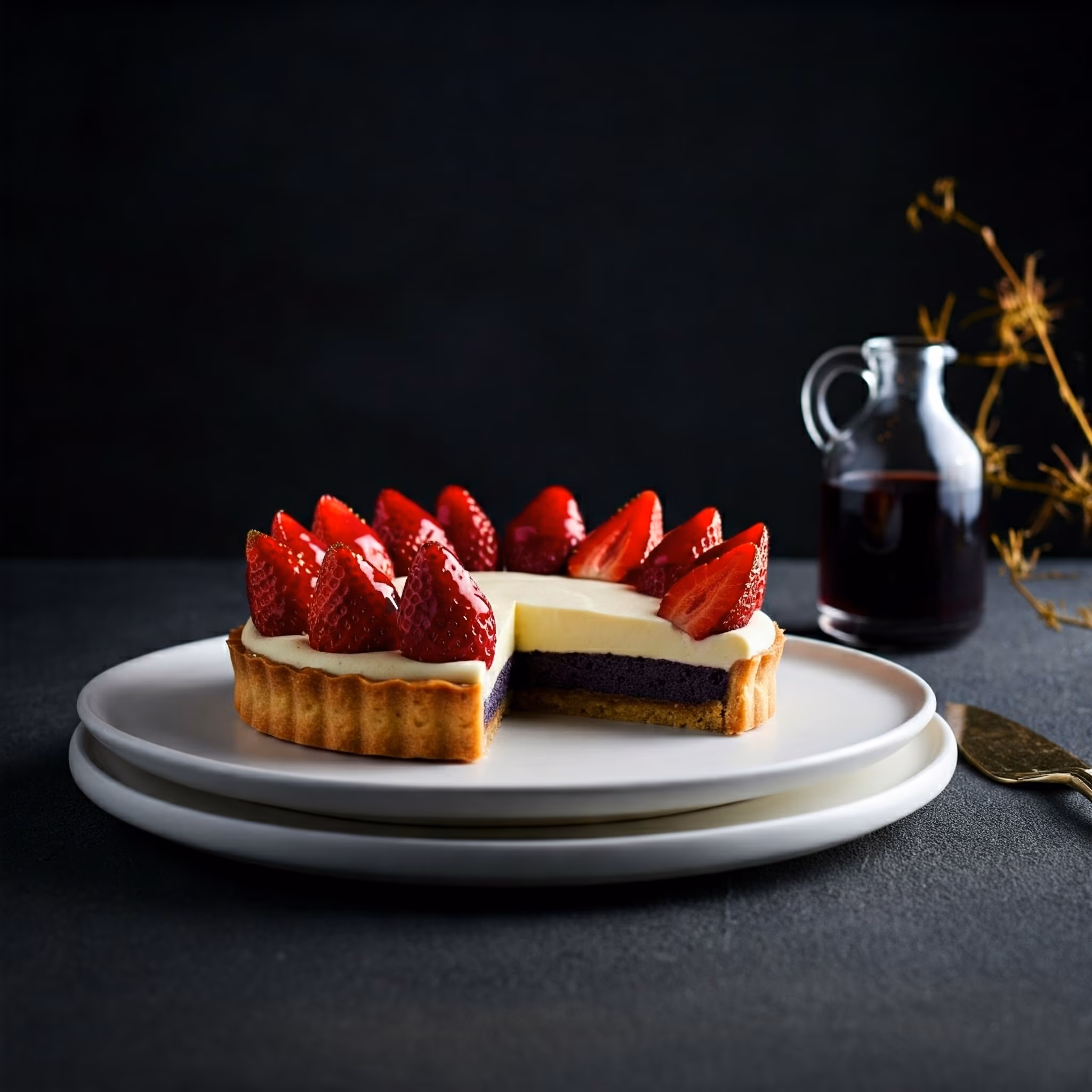 Strawberry Mascarpone Tart with Port Glaze is an elegant dessert that beautifully combines the sweetness of fresh strawberries with the creamy richness of mascarpone cheese. The buttery, flaky tart crust provides a perfect base, while the mascarpone filling offers a smooth and indulgent contrast. Topped with ripe, juicy strawberries, the tart is finished with a luscious port wine glaze that adds a deep, slightly fruity sweetness, enhancing the flavors of the fruit and cream. This sophisticated tart is perfect for special occasions or a refined treat, offering a balance of textures and flavors that will leave a lasting impression on your taste buds.