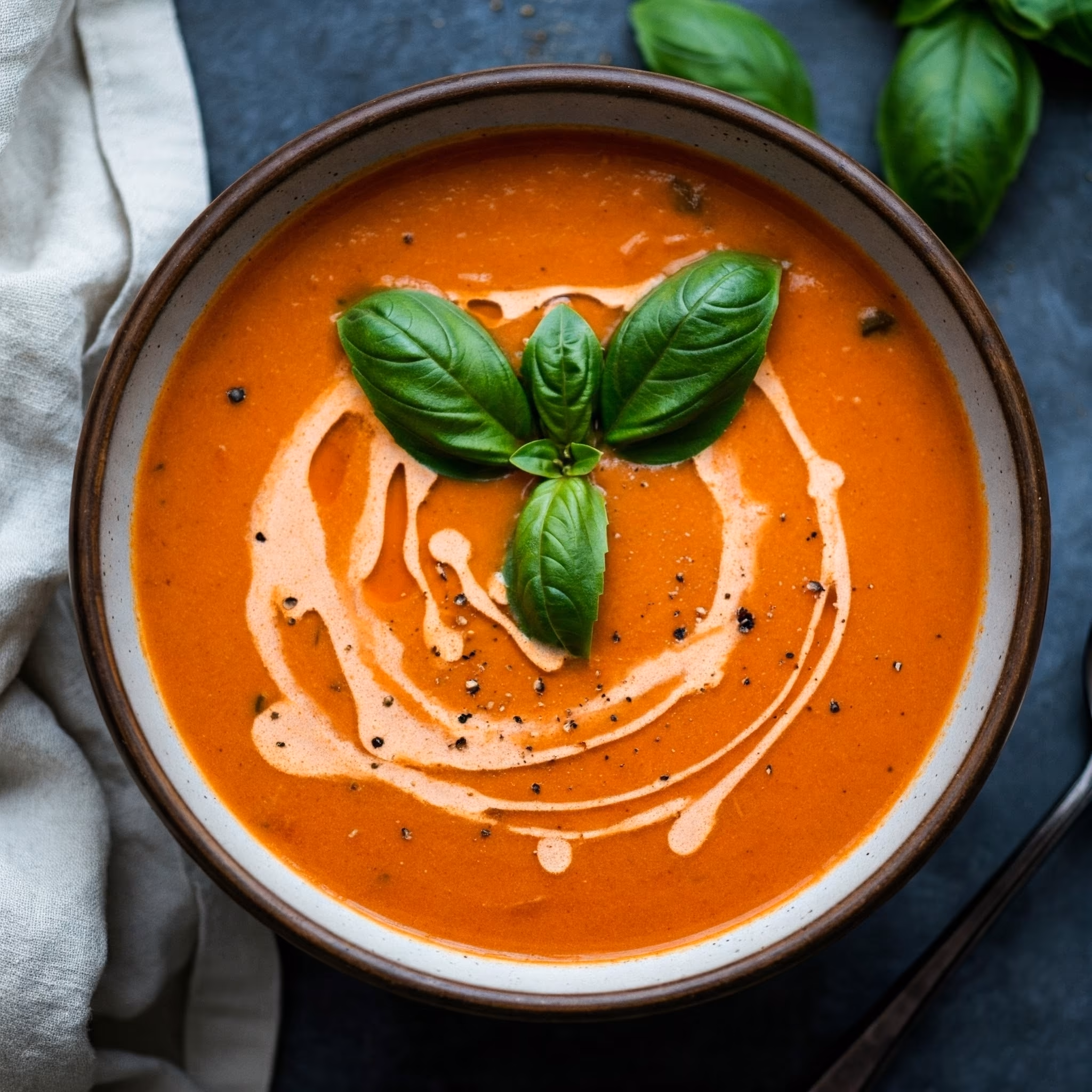 Vegan Creamy Basil Tomato Soup is a comforting and flavorful plant-based twist on a classic favorite. This creamy soup features a rich tomato base blended with aromatic basil, creating a harmonious balance of sweet and savory flavors. The addition of plant-based milk or cream creates a velvety smooth texture, while a touch of garlic and onion adds depth. This soup is not only delicious but also packed with nutrients and naturally vegan. Whether enjoyed as a light lunch, a starter, or a comforting dinner, Vegan Creamy Basil Tomato Soup is a satisfying and flavorful dish that will warm you from the inside out.