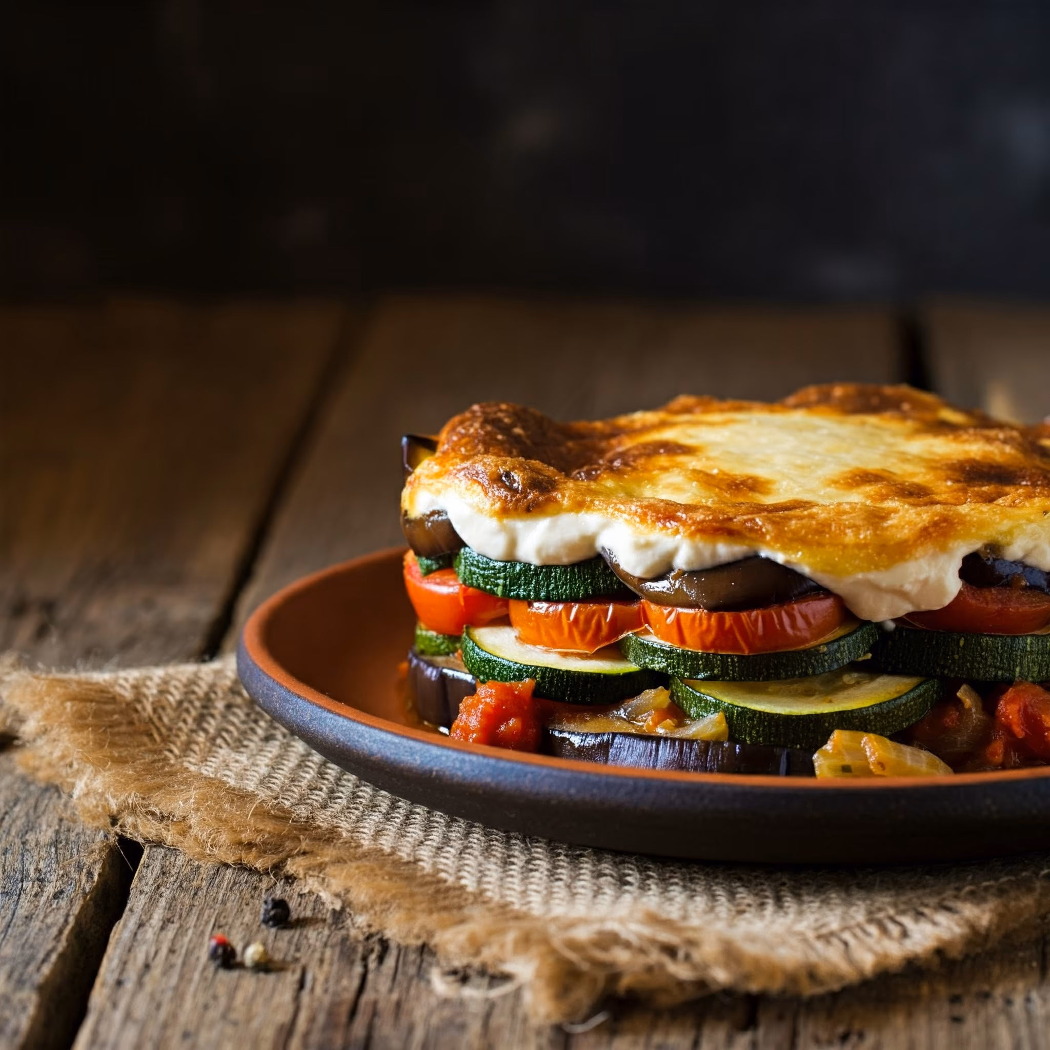 Vegetarian Moussaka is a delicious and hearty dish that replaces the traditional meat with lentils and layers of vegetables. This Greek-inspired casserole is full of flavor and perfect for a comforting meal.